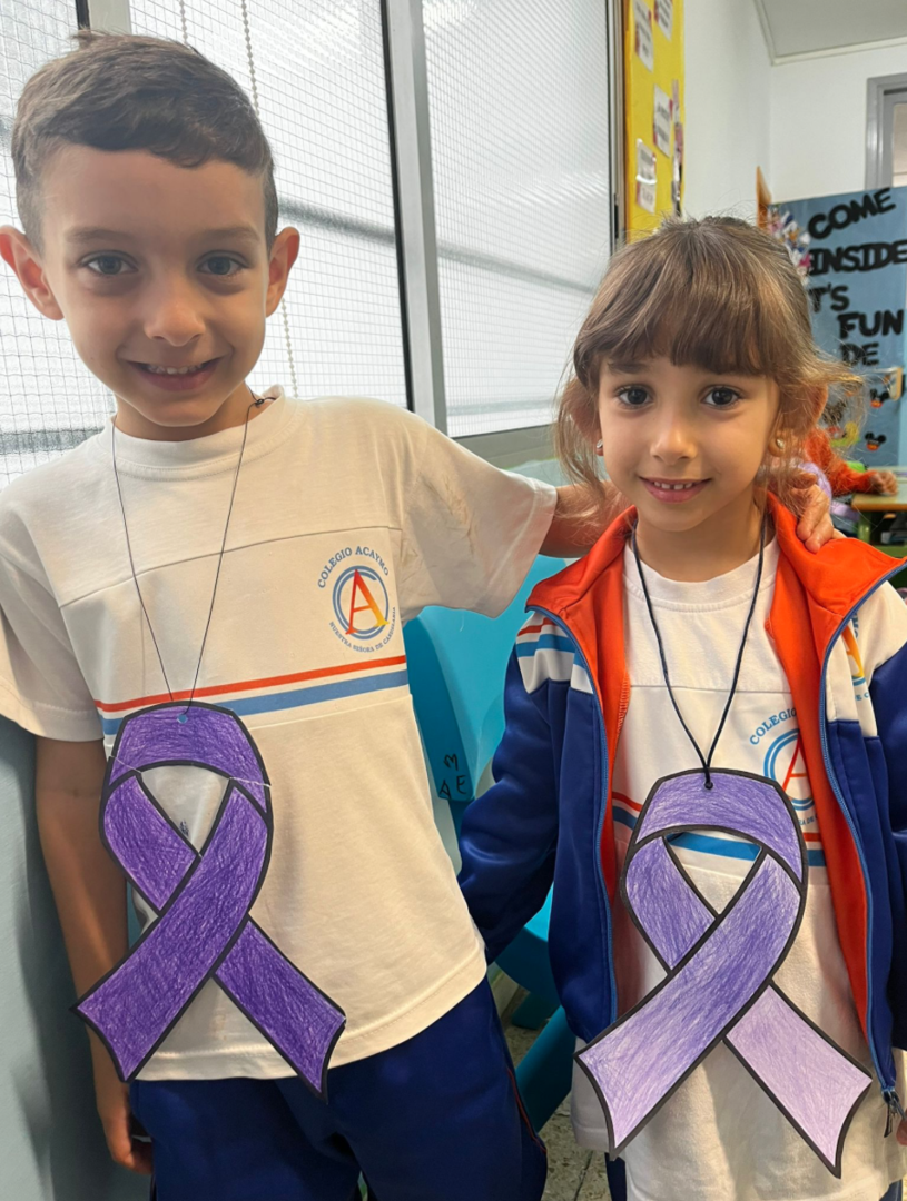 El profesorado vistió de morado como símbolo de apoyo a la causa, mientras que todo el alumnado llevó un lazo del mismo color, elaborado y pintado por ellos mismos en las clases. A