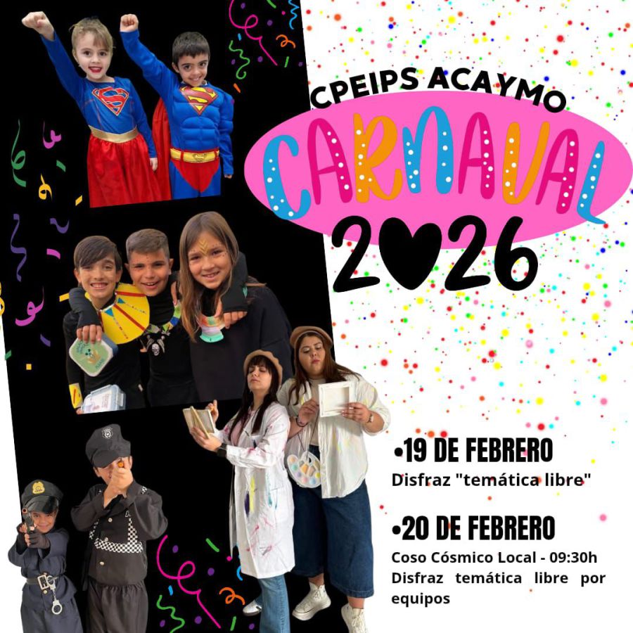 El centro celebrará el Carnaval 2026 – Universe A los días 19 y 20 de febrero. El jueves 19, el alumnado asistirá al centro con disfraces de temática libre, favoreciendo la expresión personal y el bienestar. El viernes 20 se llevará a cabo el Coso Cósmico Local, en el que el alumnado participará en Parallel Teams, acordando previamente venir disfrazados conjuntamente bajo una misma temática, fomentando así el diálogo, la cooperación y el trabajo en grupo.