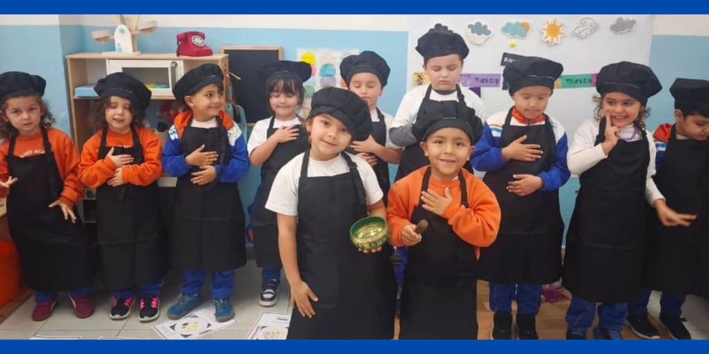 Convertirse en pequeños chefs no solo despierta su curiosidad, sino que también fomenta el trabajo en equipo, la creatividad y la autonomía. Con sus delantales puestos y muchas sonrisas, aprenden que el idioma no es solo algo que se estudia: es algo que se vive. ¡Seguimos con ilusión este delicioso viaje de aprendizaje!