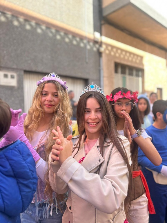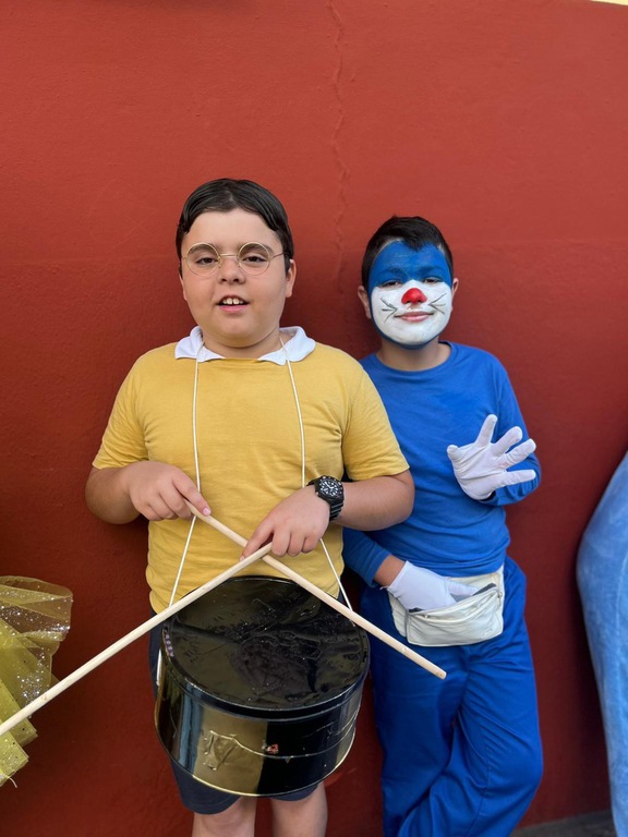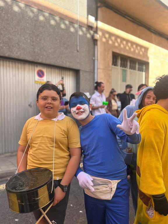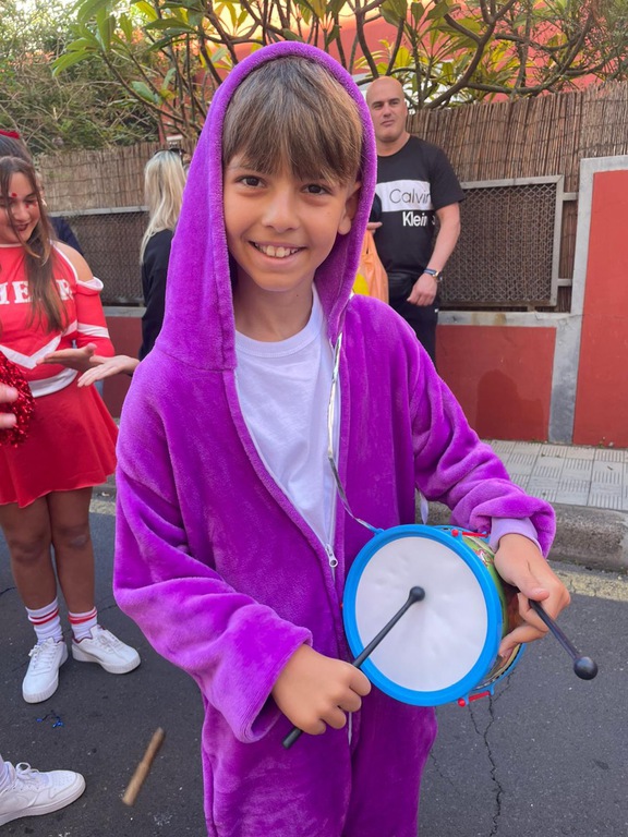 Al llegar a la plaza del barrio más cercana al cole, Infantil nos regaló sus bailes carnavaleros, acompañados y perfectamente acompasados por Teacher Paula. Y Primaria, toda junta, puso el broche final con su murga: una actuación divertida que combina música, teatro y sátira para sacarnos sonrisas… ¡y alguna que otra carcajada!