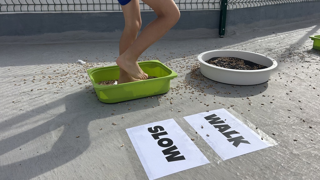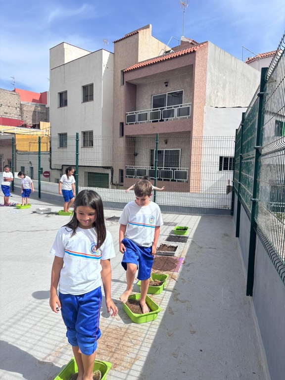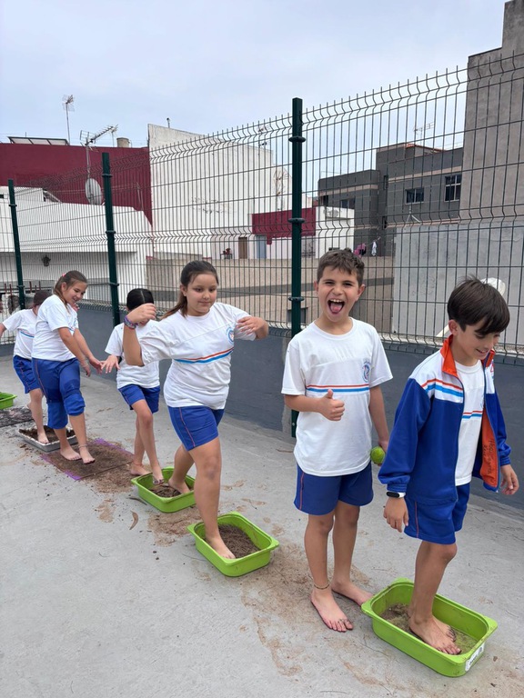 El pasado lunes 23 de febrero convertimos el cole en una pequeña aventura sensorial con nuestro Circuito Sensorial de Grounding, una propuesta de Mindfulness para todo el alumnado desde nuestro Proyecto There is No Planet B & Mondays for Future. Nos encontramos en el Patio Cósmico (azotea superior de la cancha), donde preparamos distintas estaciones con materiales naturales como agua, césped, arena o barro para explorar con calma, curiosidad… ¡y todos los sentidos bien despiertos!