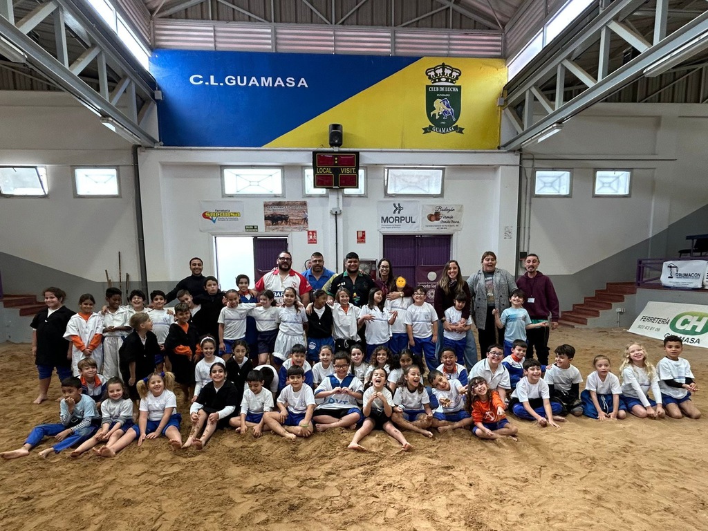 El alumnado de Primaria ha visitado el Terrero de Lucha Canaria de Guamasa. Allí conocieron a los luchadores del club, recorrieron las instalaciones y, lo mejor, disfrutaron de una sesión de aprendizaje y práctica de lucha con ellos.