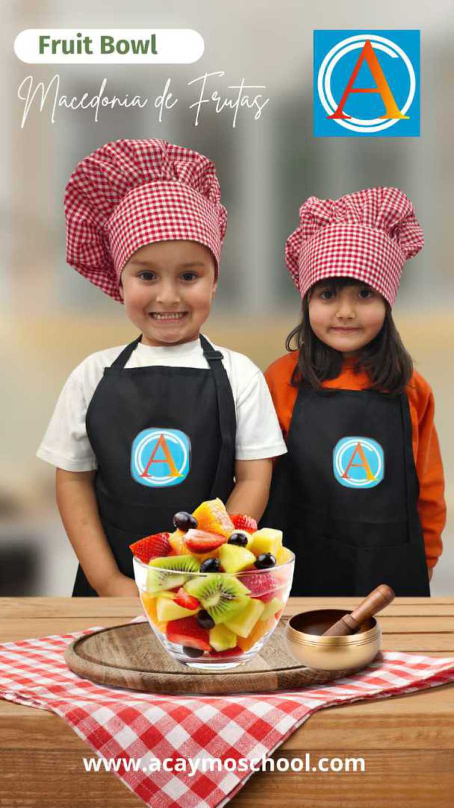 Con curiosidad, trabajo en equipo y mucho inglés, comienzan a descubrir el placer de preparar recetas sencillas y saludables. En esta primera experiencia han elaborado una macedonia de frutas, colorida, fresca y llena de sabor natural.