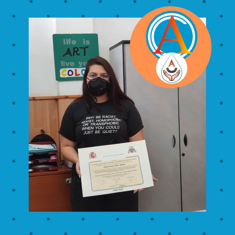 Ariadna María Barrera Rodríguez, antigua alumna del Centro, finalizando Educación Secundaria Obligatoria en el año 2017, continuó sus estudios en el I.E.S. La Laboral realizando Bachillerato de Ciencias de la Salud, seguidamente realizó el CFGM de Farmacia en el I.E.S. Los Gladiolos. Actualmente se encuentra trabajando de promotora en la ONG ACNUR.